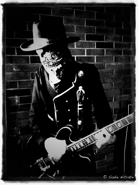 When it comes to the music of South Dakota’s doom country and hellbilly punk desperadoes Phantom of the Black Hills, two worlds couldn’t collide more violently, with plenty of bluegrass banjo pickin’, backwoods mandolin and upright bass thumpin’, together with loud punk guitar, hard-hitting drums and dirty, snarling vocals. This definitely isn’t your grandpappy’s country music, that’s for sure. And let me tell you, these fellas don’t look like the strummers and singers your grandpappy watched at the Grand Ole Opry or Louisana Hayride; instead, with cowboy hats pulled down over menacing outlaw masks, button-down shirts with suspenders, jeans and leather boots, these bandits look better suited to rob a stage coach or hold up a bank than lay down their hellfire songs.